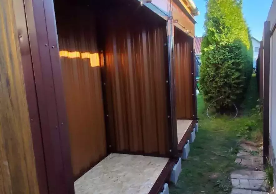 - Мобильность. В разобранном виде дровник выглядит как пак, который перевозится на малотоннажном и малогабаритном транспорте и доставляется даже в труднодоступные места. На участке собранный дровник легко перемещается без необходимости использовать специальную технику или оборудование. Кроме того, для установки не нужен фундамент, поэтому такой контейнер максимально мобилен.