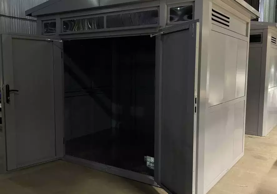 По своей конструкции контейнер Skoggy представляет модульное сооружение, которое состоит из сборных элементов. При сборке элементы устанавливаются один в другой и фиксируются болтовыми соединениями. Конструкция дверей, крыши и стен представляют собой каркас из сложногнутого профиля толщиной 0,7 мм. Каркас обшивается профлистом НС-35 толщиной 0,45-0,55 мм. Такая толщина оптимальна для обеспечения прочности и устойчивости конструкции.