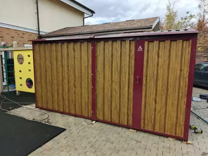 Нами были изготовлены две конструкции размером 0,8 х 2,5 х 2,4 м в стандартном цинковом цвете.