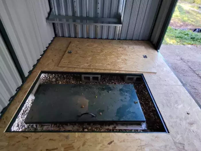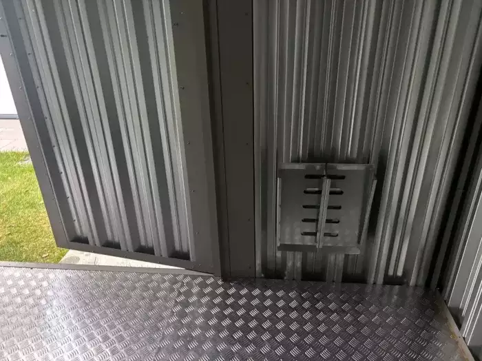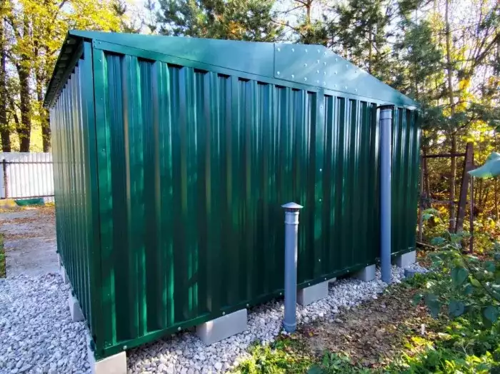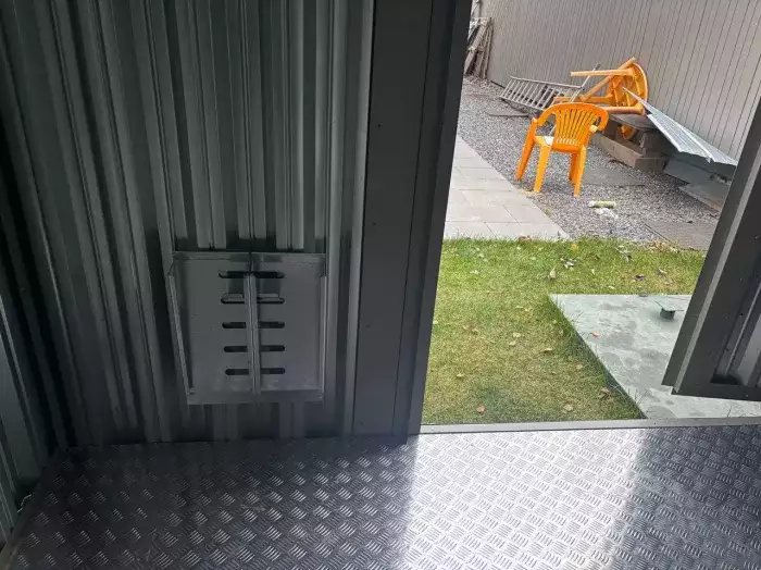 Дополнительно хозблок оборудован световым окном размером 90 х 30 см для проникновения естественного света внутрь постройки.