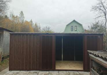 Доставляли хозблок на участок заказчика манипулятором в разобранном виде. Нашими специалистами предоставлялась услуга по сборке. Справились с задачей за 3 часа.