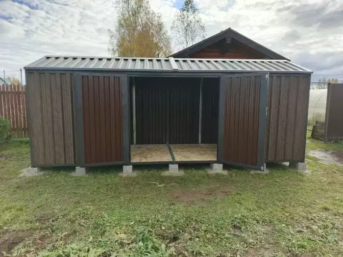 Проект: 4-метровый хозблок для хранения садовой техники и инвентаря в расцветке "под дерево".