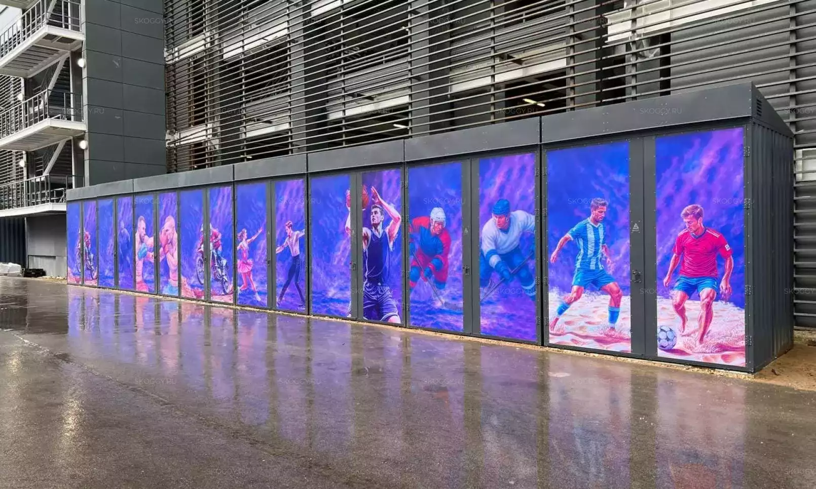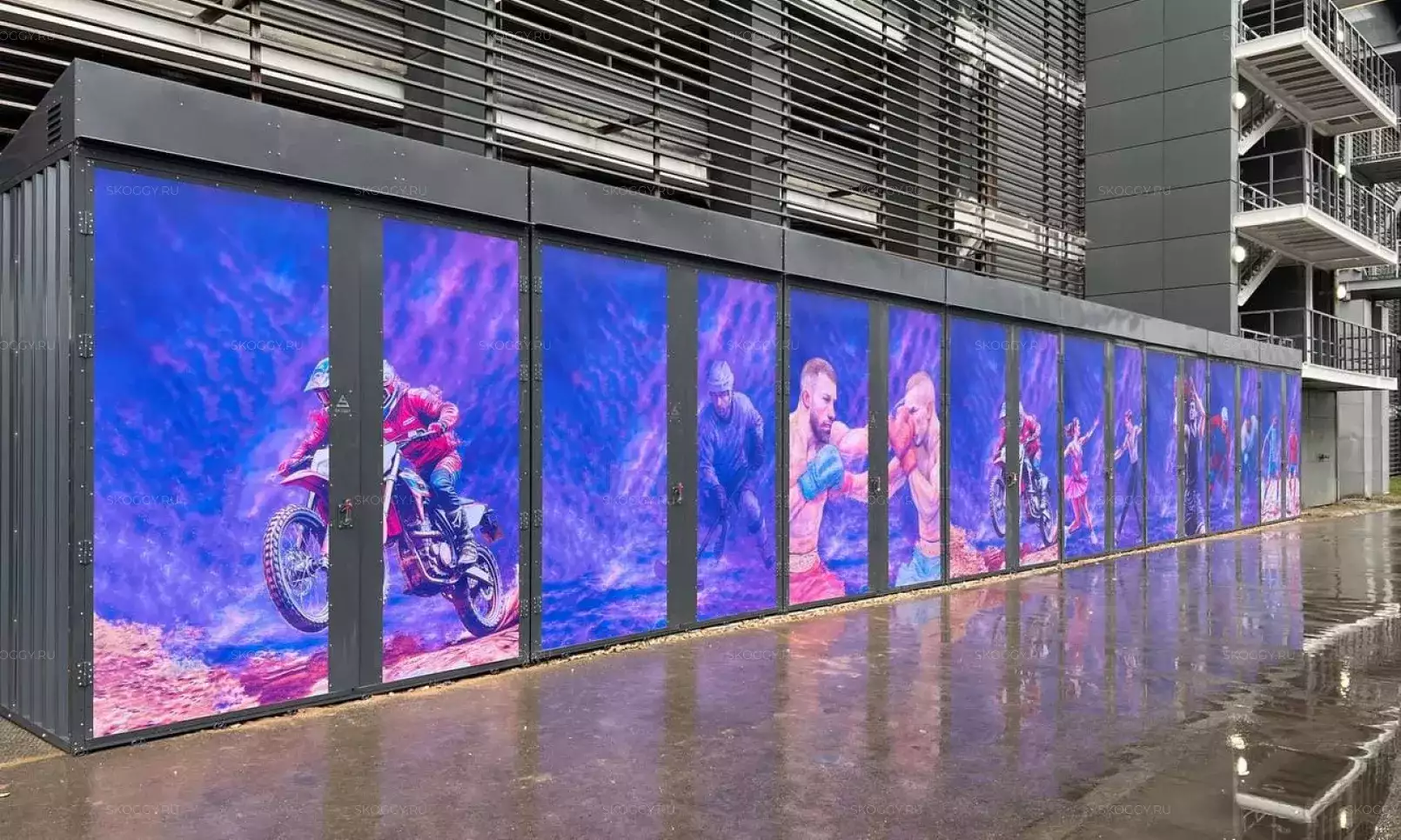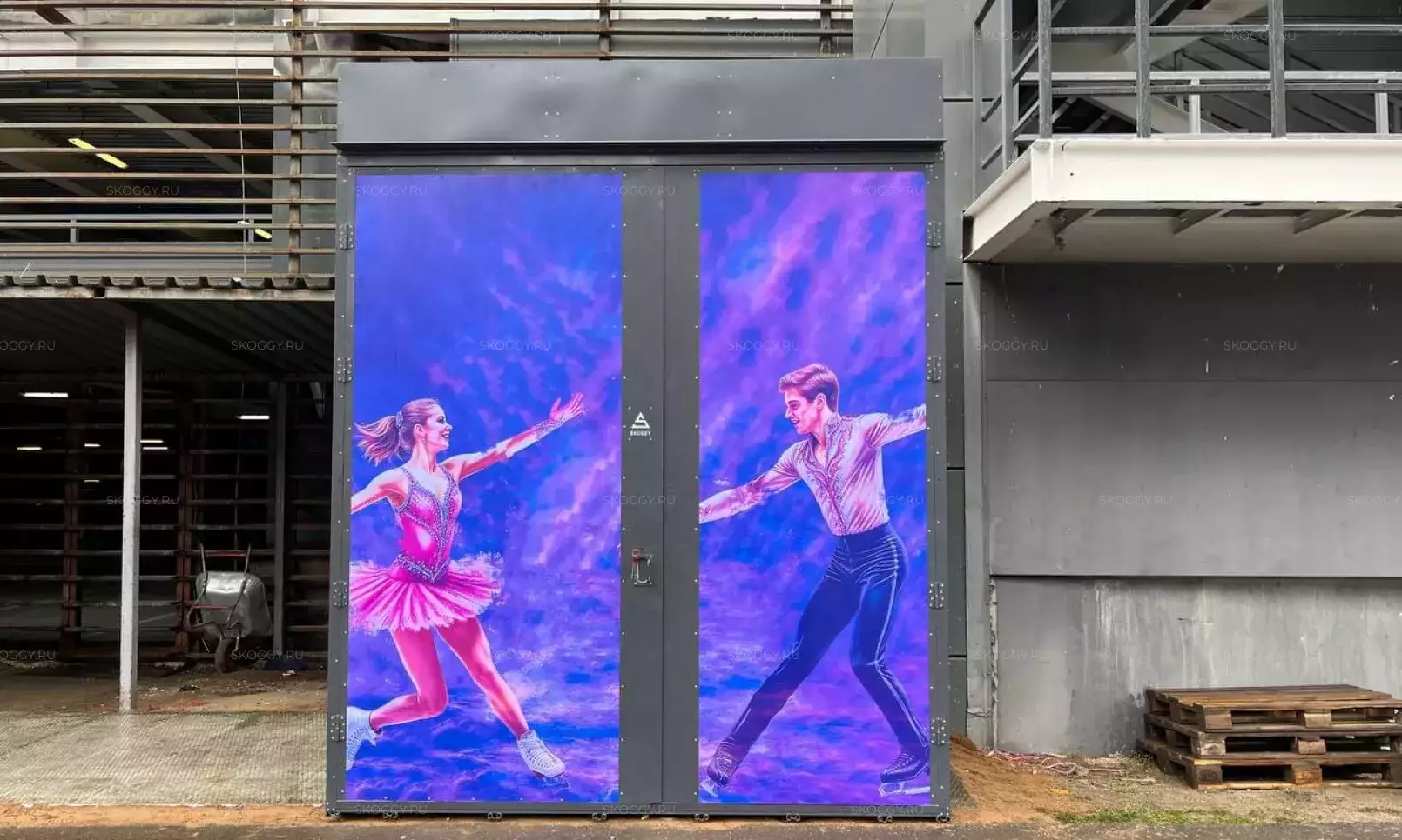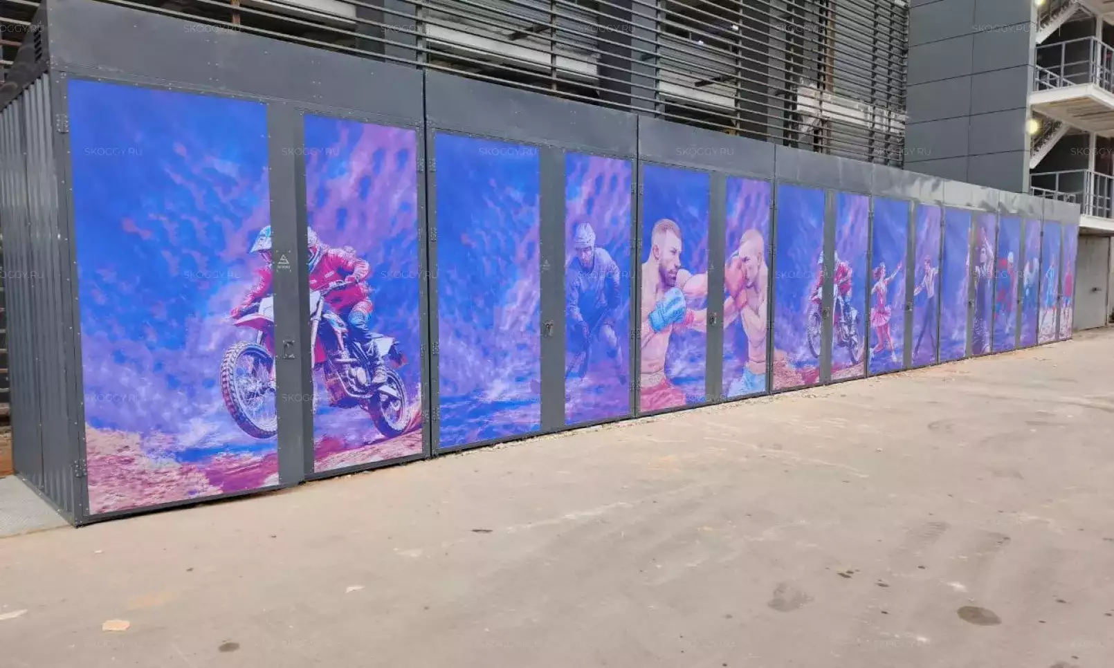 Нами была изготовлена стандартная 4-метровая конструкция с плоской крышей и торцевой воротной группой в неизменно популярном шоколадно-коричневом цвете RAL 8017.