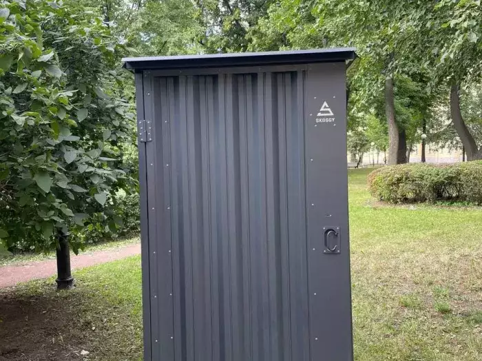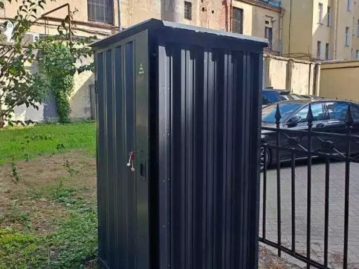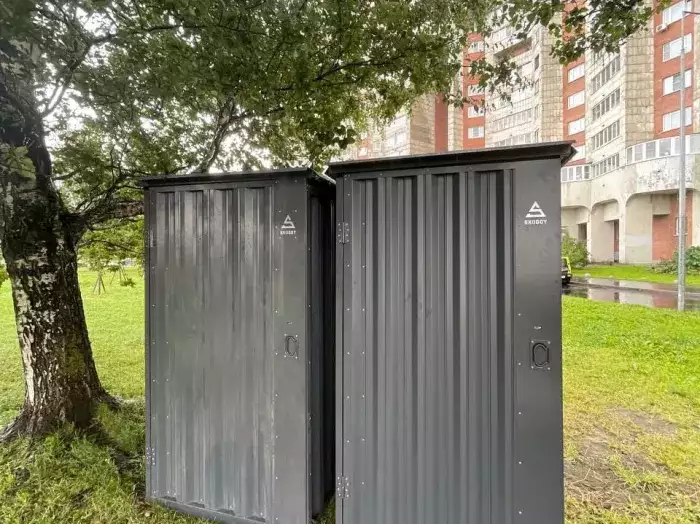 Так как место для будущего помещения уже было подготовлено, мы предложили вариант, который подходит по размеру: стандартный блок-контейнер 4 м. Наши клиенты хотели, чтобы контейнер для инвентаря был нес не только практическую пользу, но еще и был красивым. Мы предложили им палитру цветов, заказчики выбрали нежный пастельно-фиолетовый цвет. Контейнер был окрашен методом порошковой окраски, который надолго обеспечивает яркость цвета.