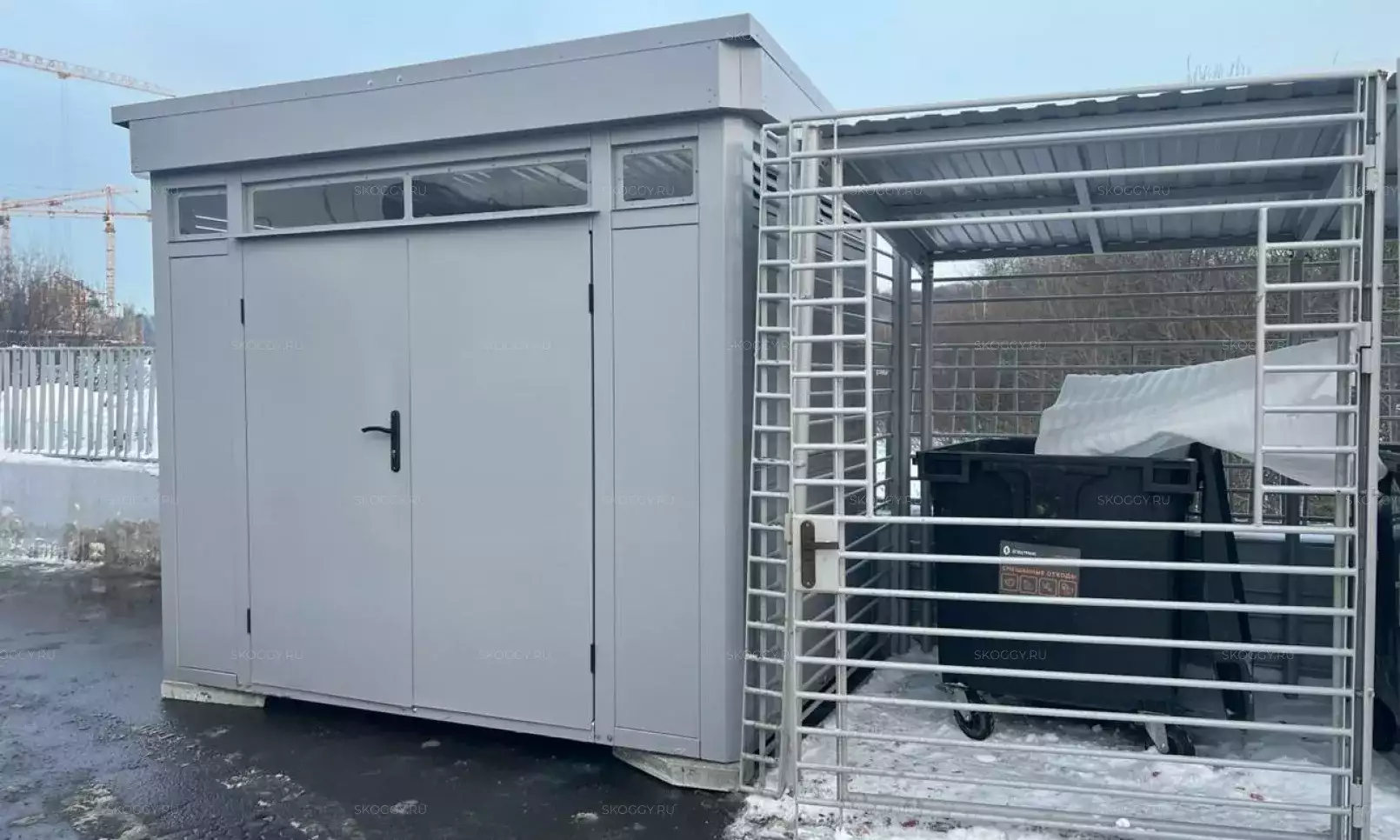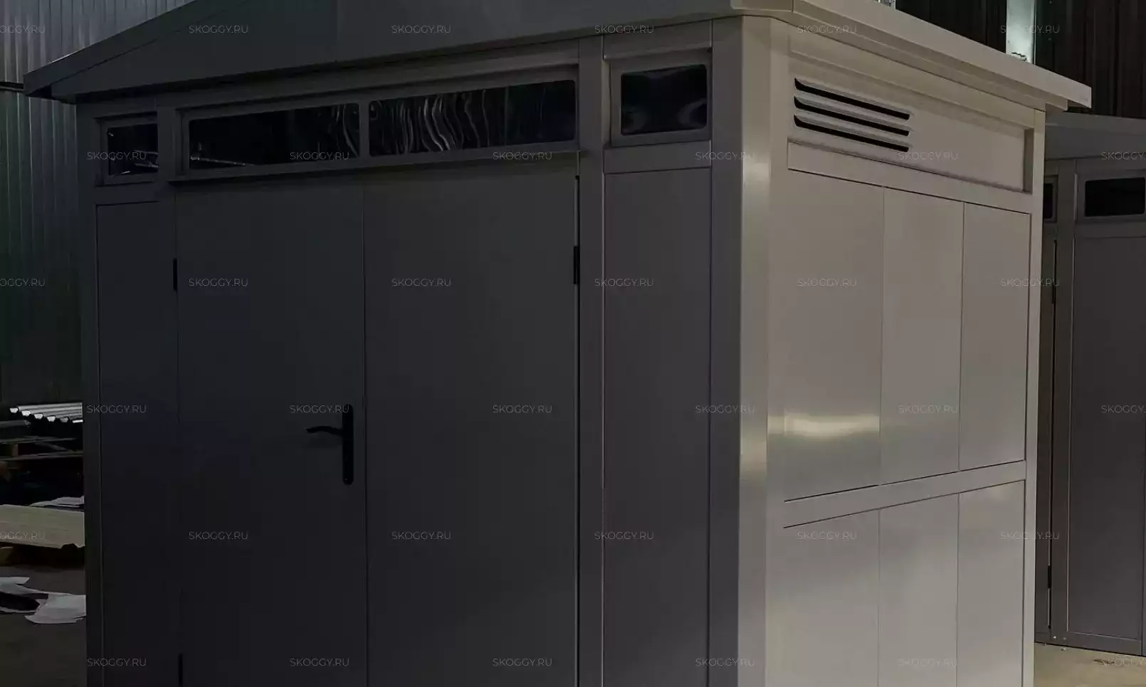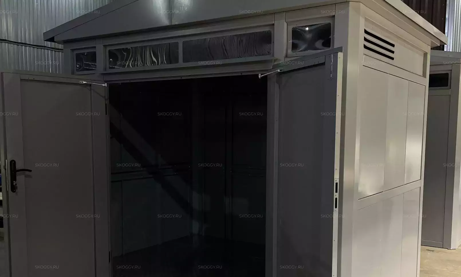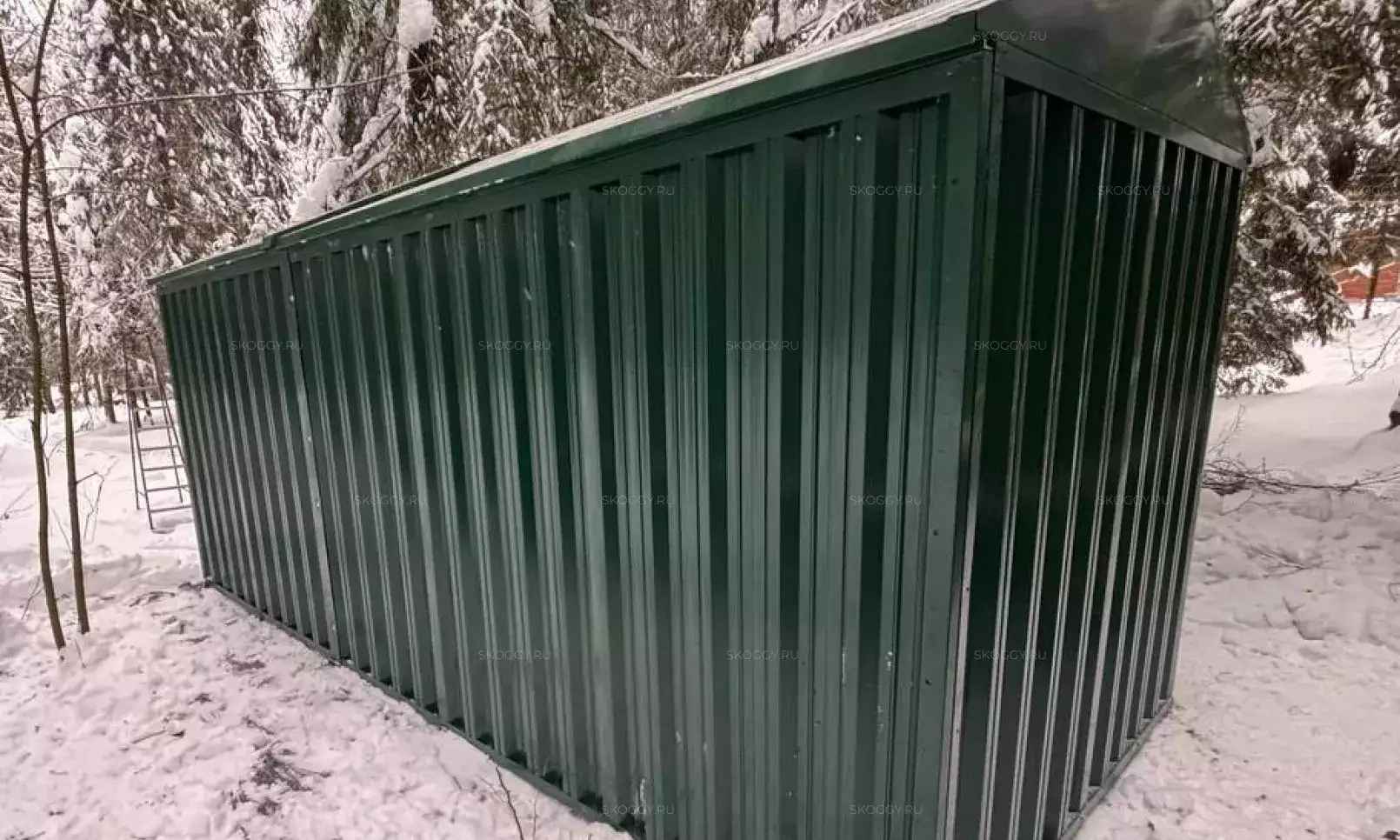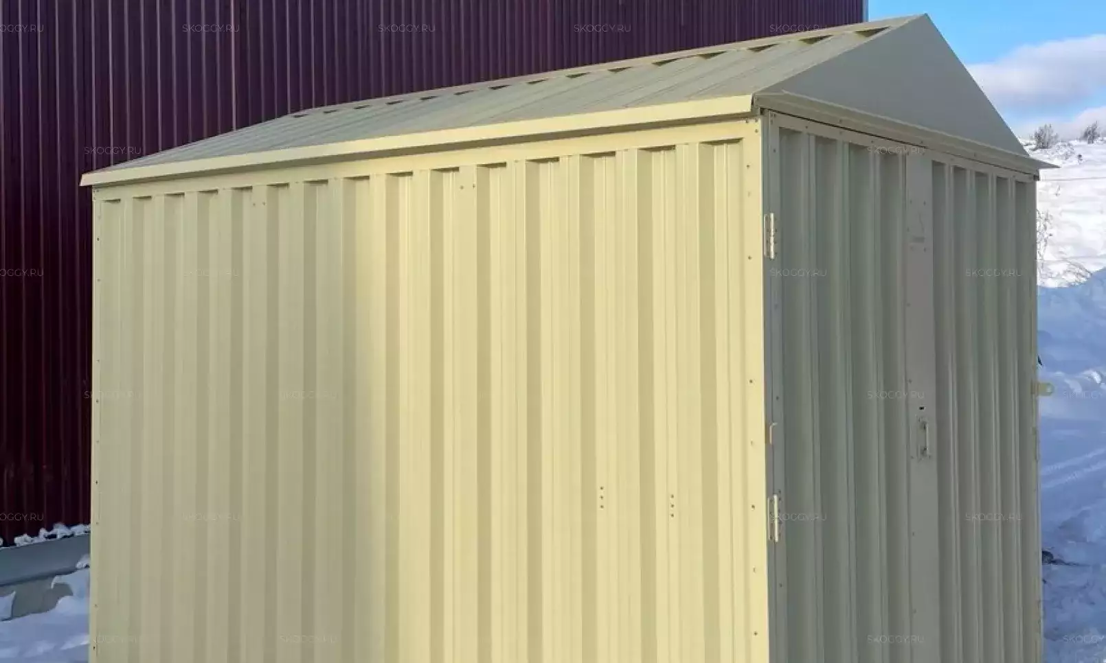 К нам обратился клиент, у которого уже имелся блок-контейнер от компании SKOGGY. Он решил усовершенствовать его и оптимизировать хранение инвентаря с помощью углового стеллажа и специальной системы на направляющих.