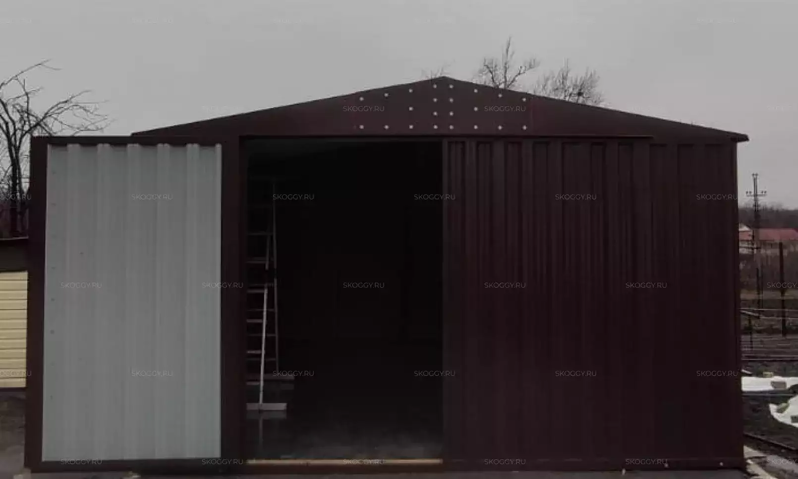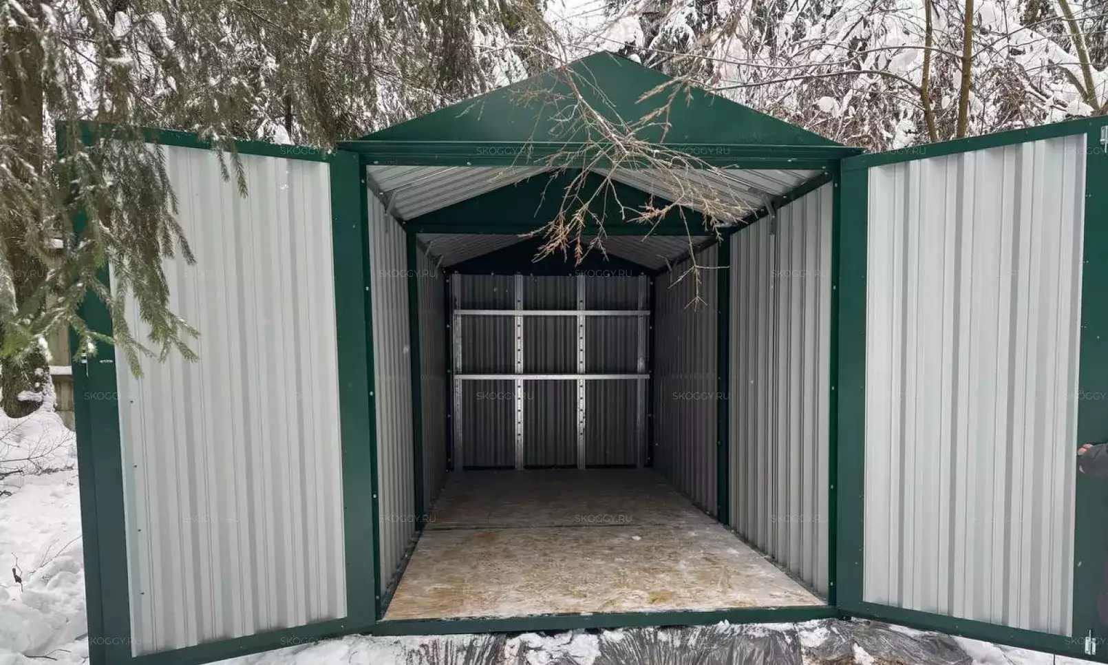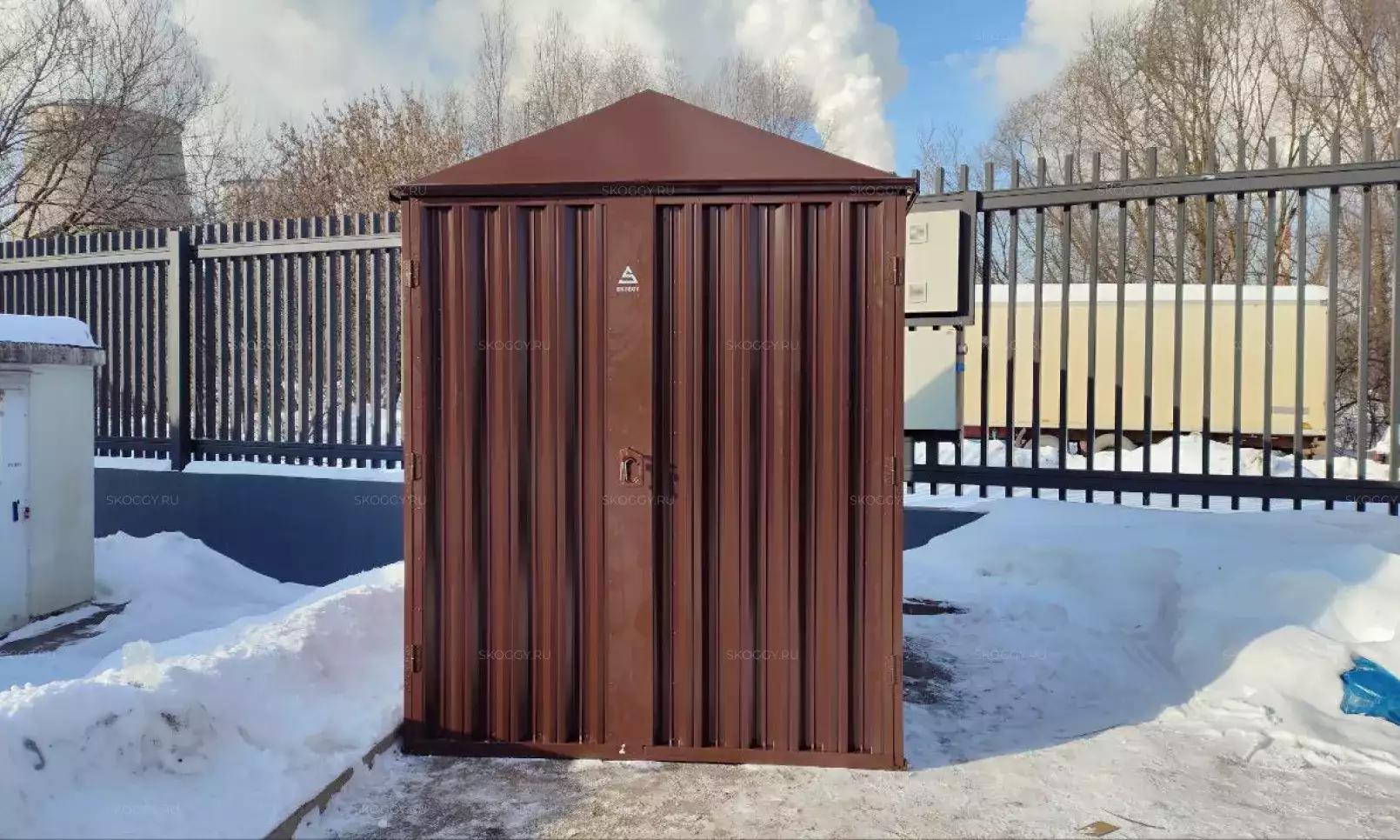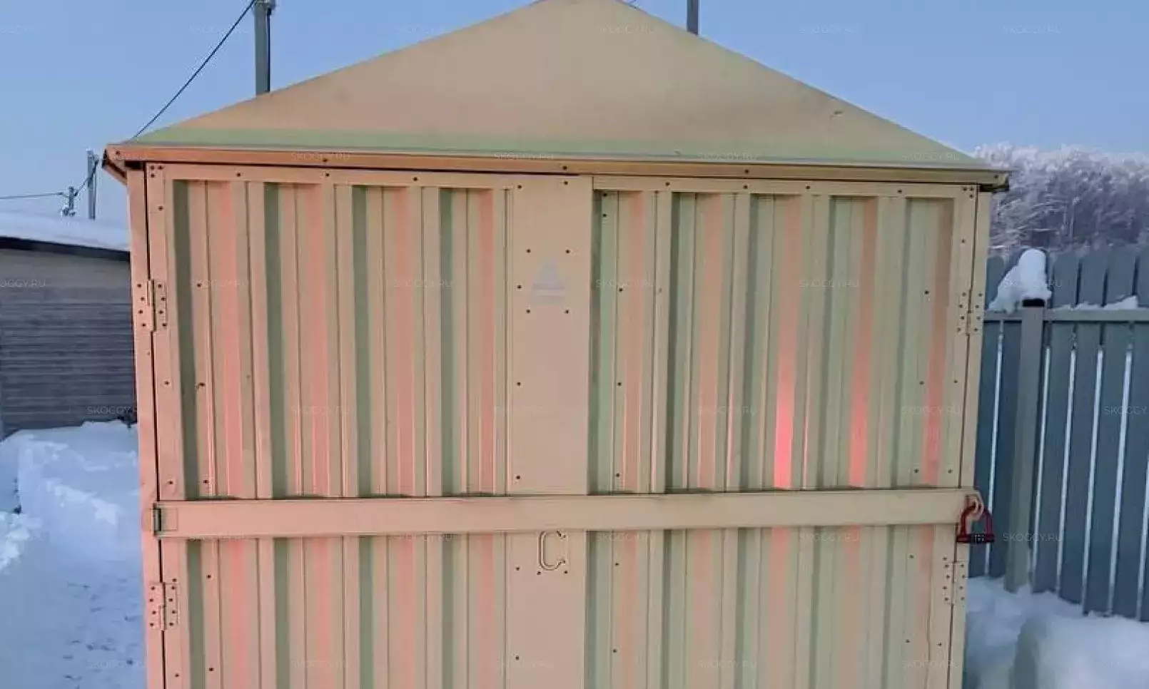 К нам обратился клиент, у которого уже имелся блок-контейнер от компании SKOGGY. Он решил усовершенствовать его и оптимизировать хранение инвентаря с помощью углового стеллажа и специальной системы на направляющих.